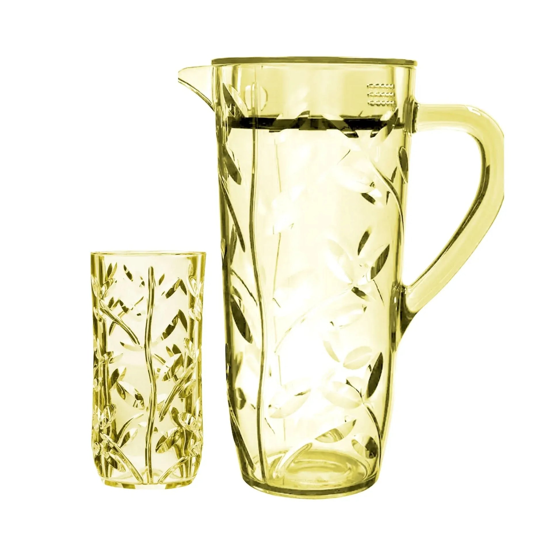 Available at Karachi Port, this acrylic water set is easily accessible for customers worldwide. Whether you're hosting a dinner party or enjoying a casual meal with family, the Acrylic Leaves Cut Water Set offers both style and functionality. |