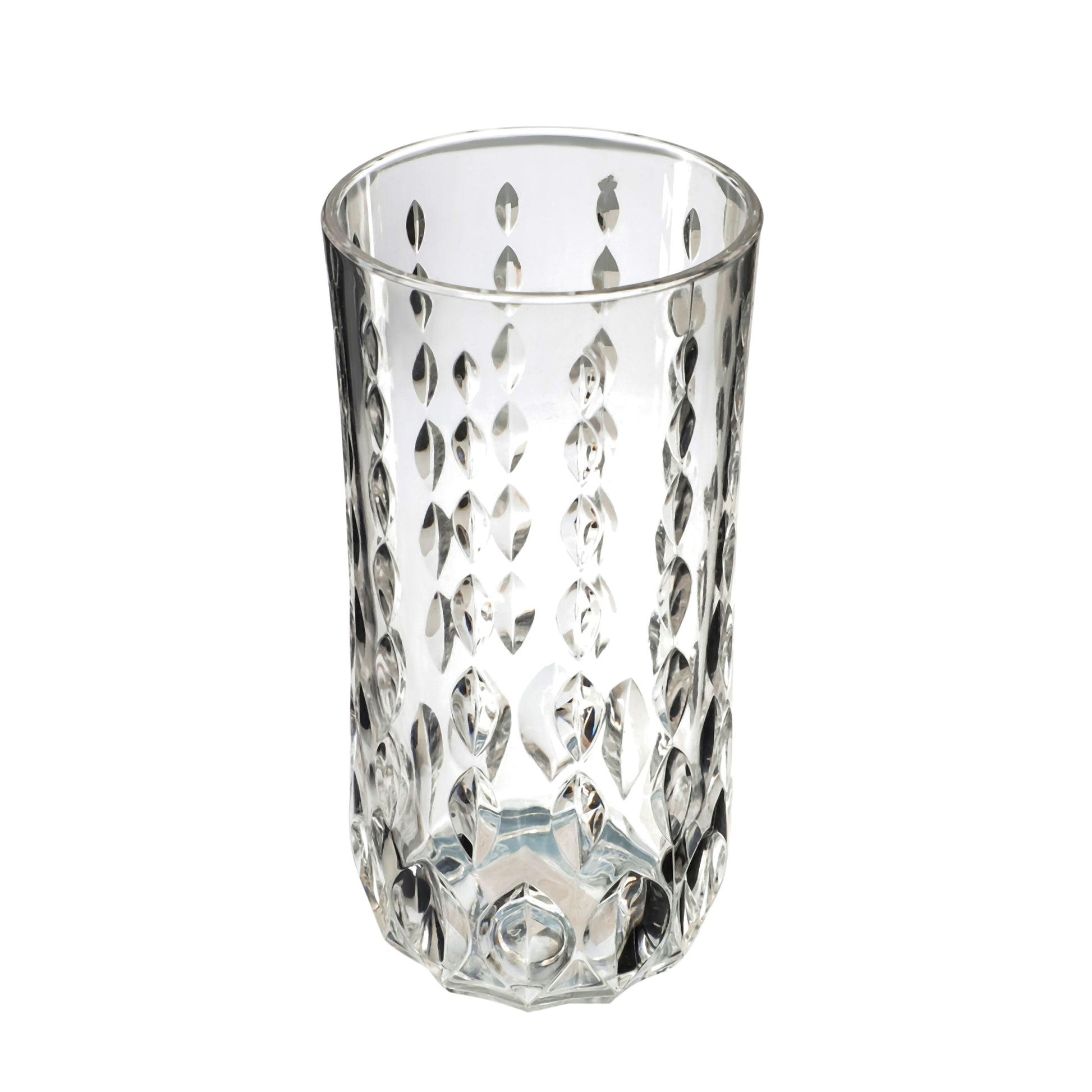 This sophisticated transparent acrylic water drop-cut glass is ideal for serving drinks with flair. Because of its premium material, it is both strong and aesthetically pleasing for everyday usage and special occasions.